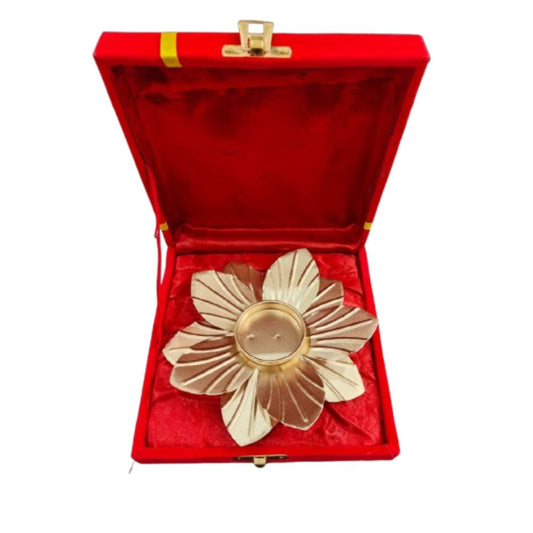 Silver Gold Plated Single Kamal Bowl With Royal Velvet Box