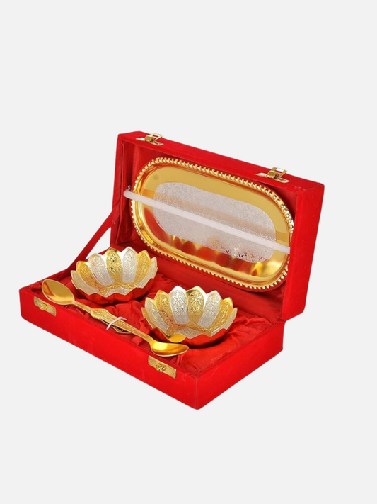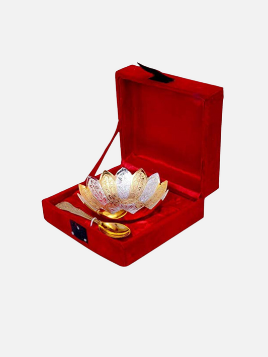 Silver & Gold Kamal Bowl Set with Royal Velvet Box