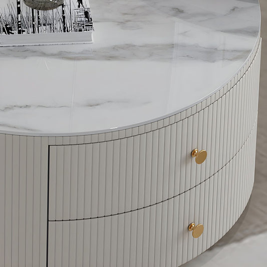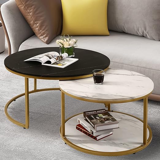 - Round Marble Coffee Tables – These striking pieces serve as the focal point of your living room.